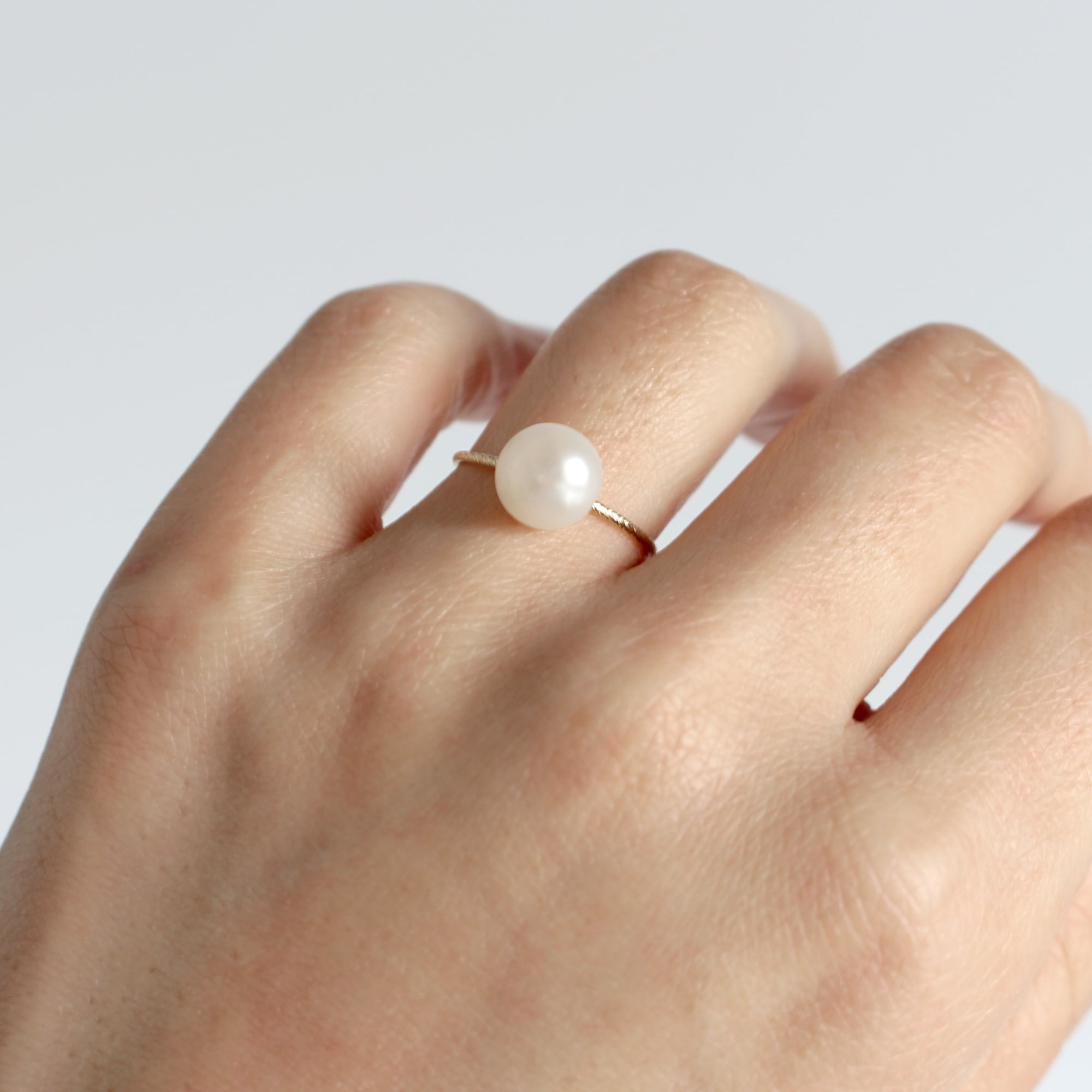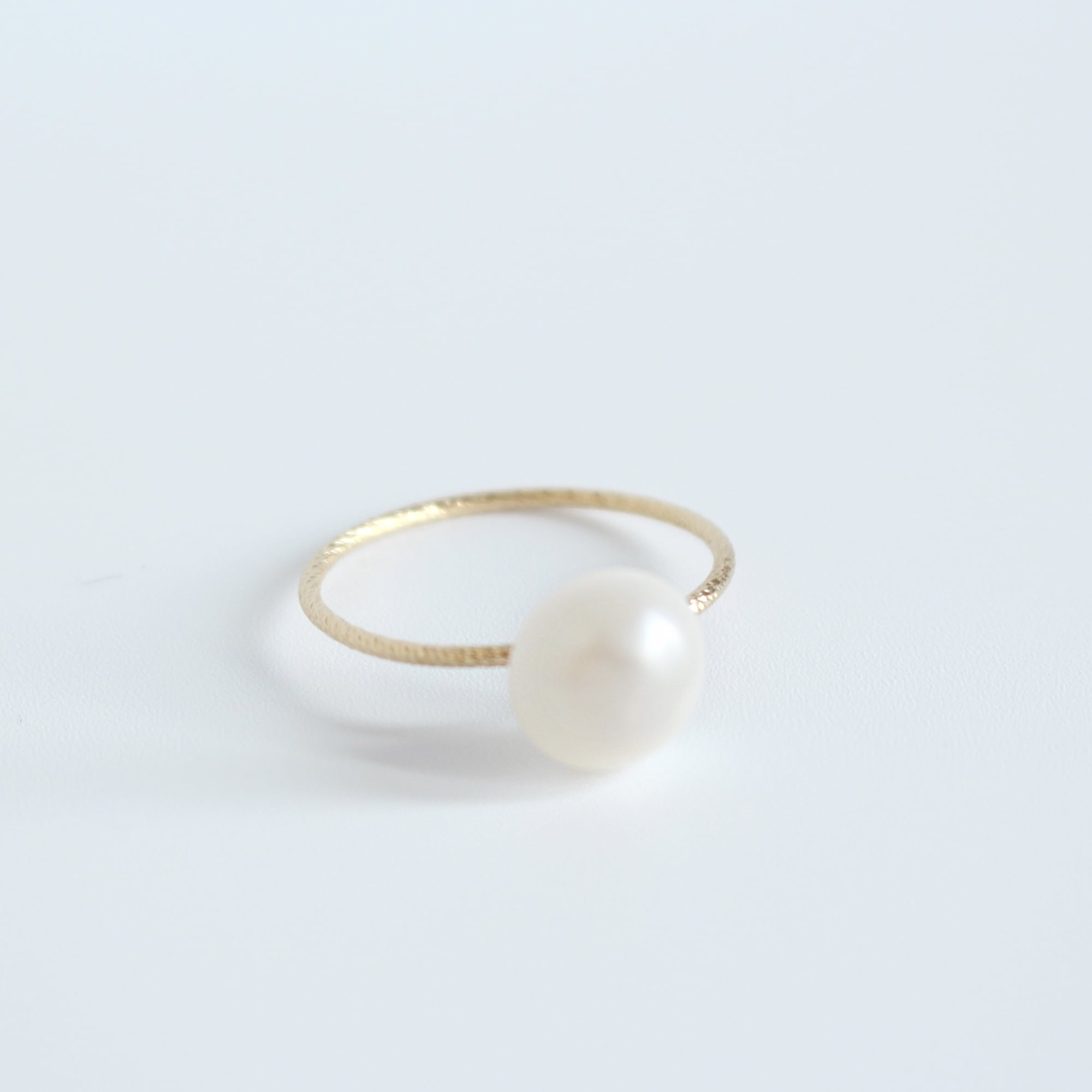 丸みを帯びた琵琶湖産パールを一粒あしらったリング。