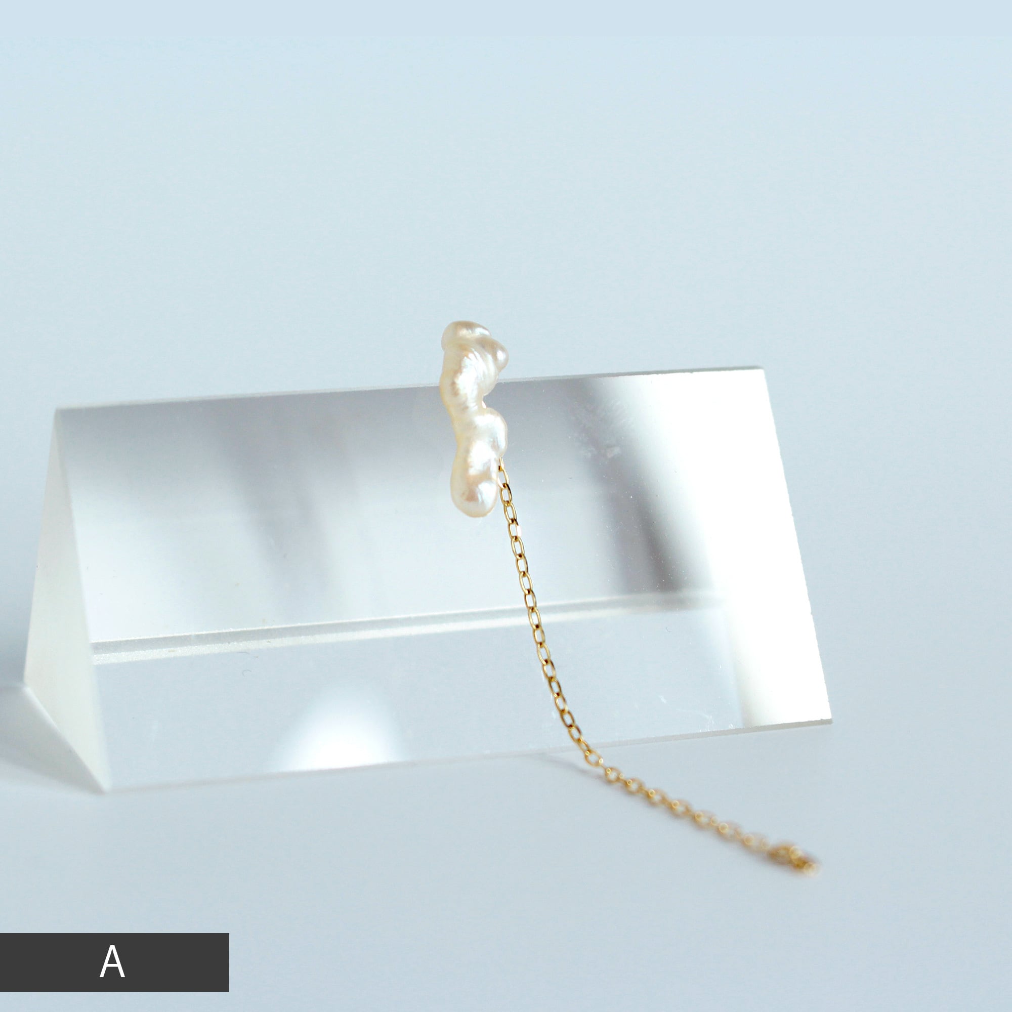 『 琵琶湖 』で生まれ育った淡水パールを使用した、特別な一品です。稀少性と歪なフォルムの存在感のある一粒を耳に飾る、ファッショナブルなジュエリーです。