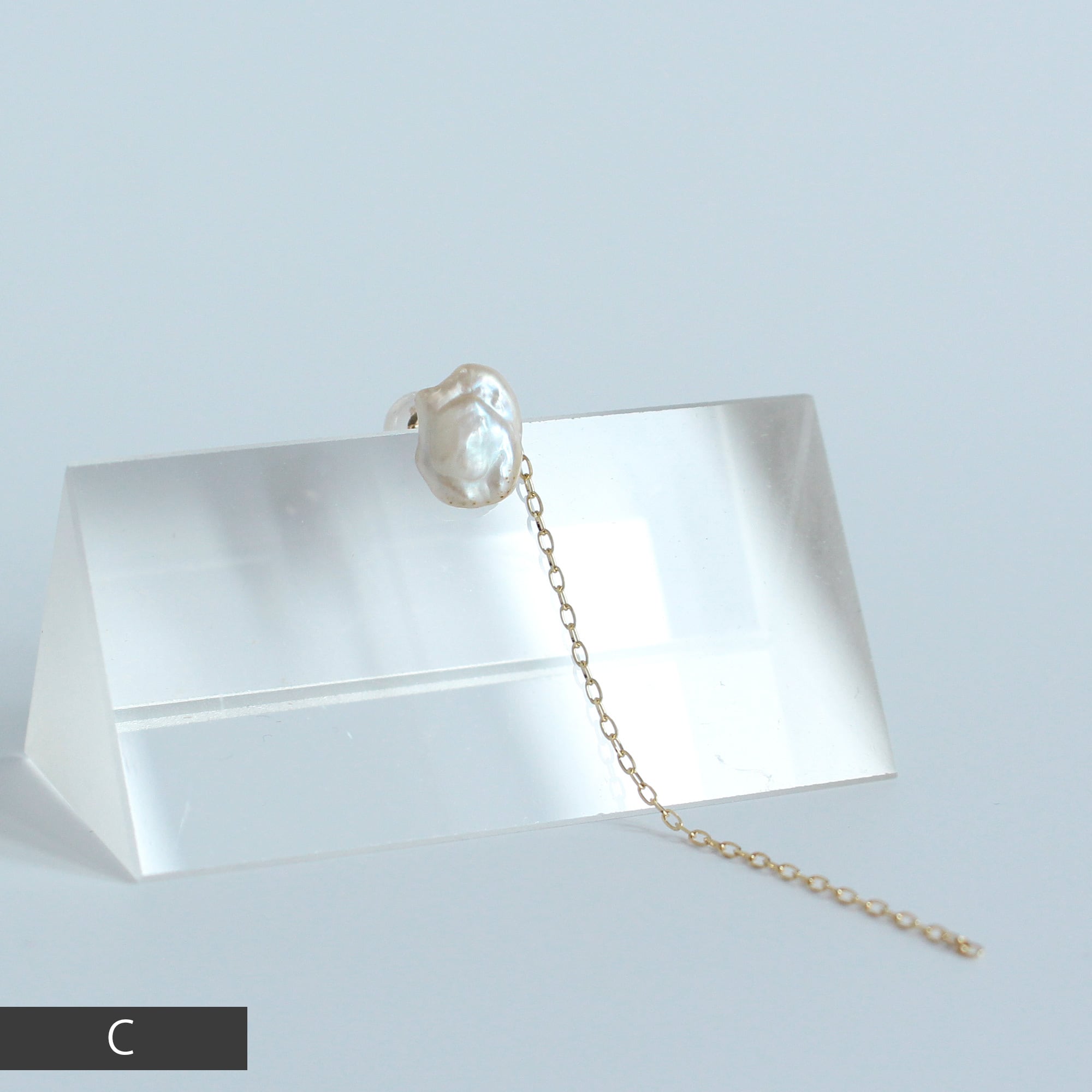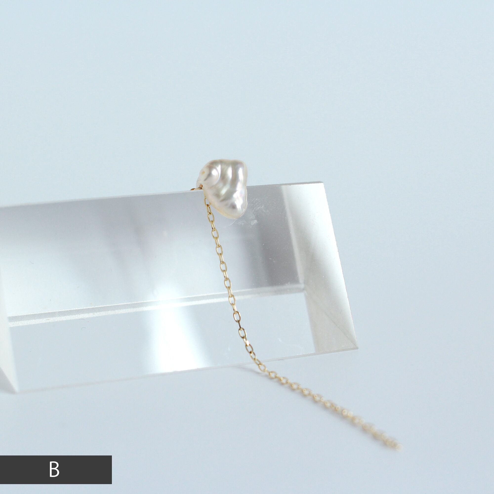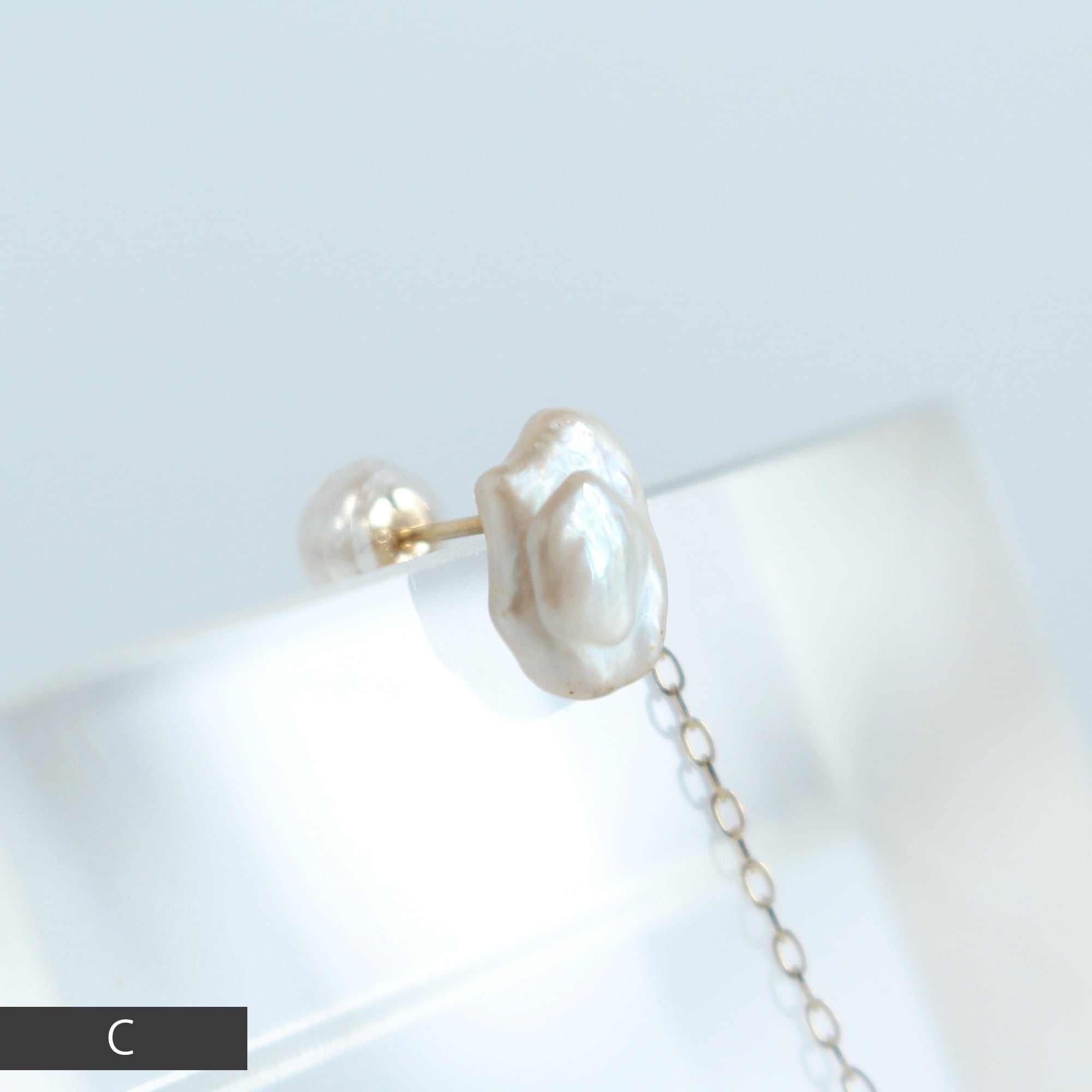 『 琵琶湖 』で生まれ育った淡水パールを使用した、特別な一品です。稀少性と歪なフォルムの存在感のある一粒を耳に飾る、ファッショナブルなジュエリーです。